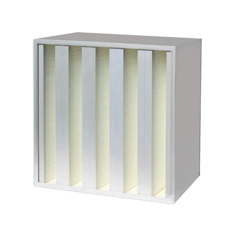 Lọc khí HEPA V-Bank HUPHACO được thiết kế với cấu trúc chữ V giúp tăng diện tích bề mặt lọc và giảm chênh áp, mang lại hiệu suất lọc lên đến 99,97% cho các hạt bụi có kích thước ≥0,3 micron. Sản phẩm thích hợp cho hệ thống HVAC, phòng sạch, nhà máy dược phẩm, y tế và công nghệ cao. Giúp duy trì không khí tinh khiết, đảm bảo tiêu chuẩn GMP và ISO.